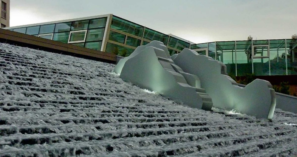 The springs converge through channels, a symbol of man’s wisdom in leading the precious resource, fertilizing the earth and creating a fountain with a continuous flow that envelops a bronze sphere, signifying the value of natural resources and their centrality in the process of change.