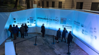 “AQUA. Leonardo’s vision” is a site-specific experience designed by Balich Worlwide Shows, illustrating how Leonardo worked with water. It hosts a great expanse of water featuring a LED screen that shows Milan’s future. Below the structure inside the canal, a cabinet of curiosities allows visitors to experience the beauty, energy and shape of water also thanks to cutting-edge technologies. Realized by Watercube, strobe lights modify the jets of water with an optical illusion, slowing them down to isolate them in very slow drops, suspended in time and space, reflected and multiplied in the mirrors.