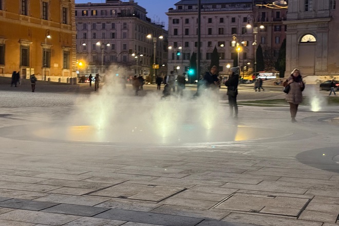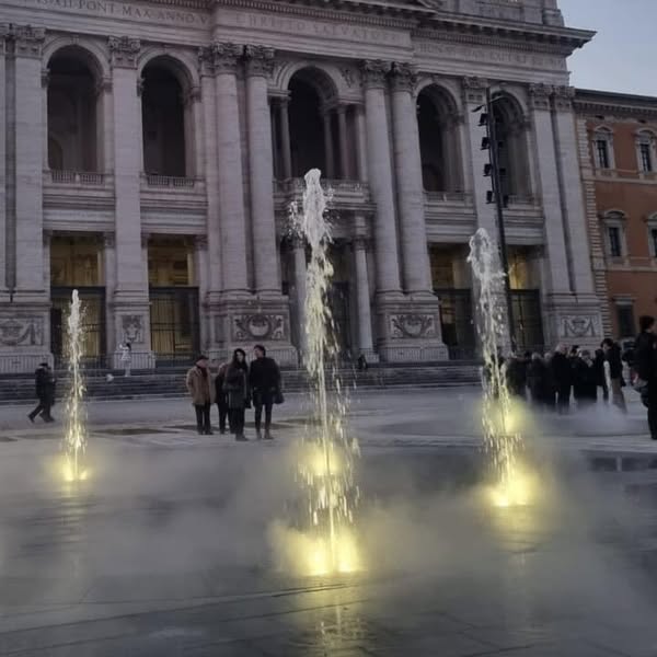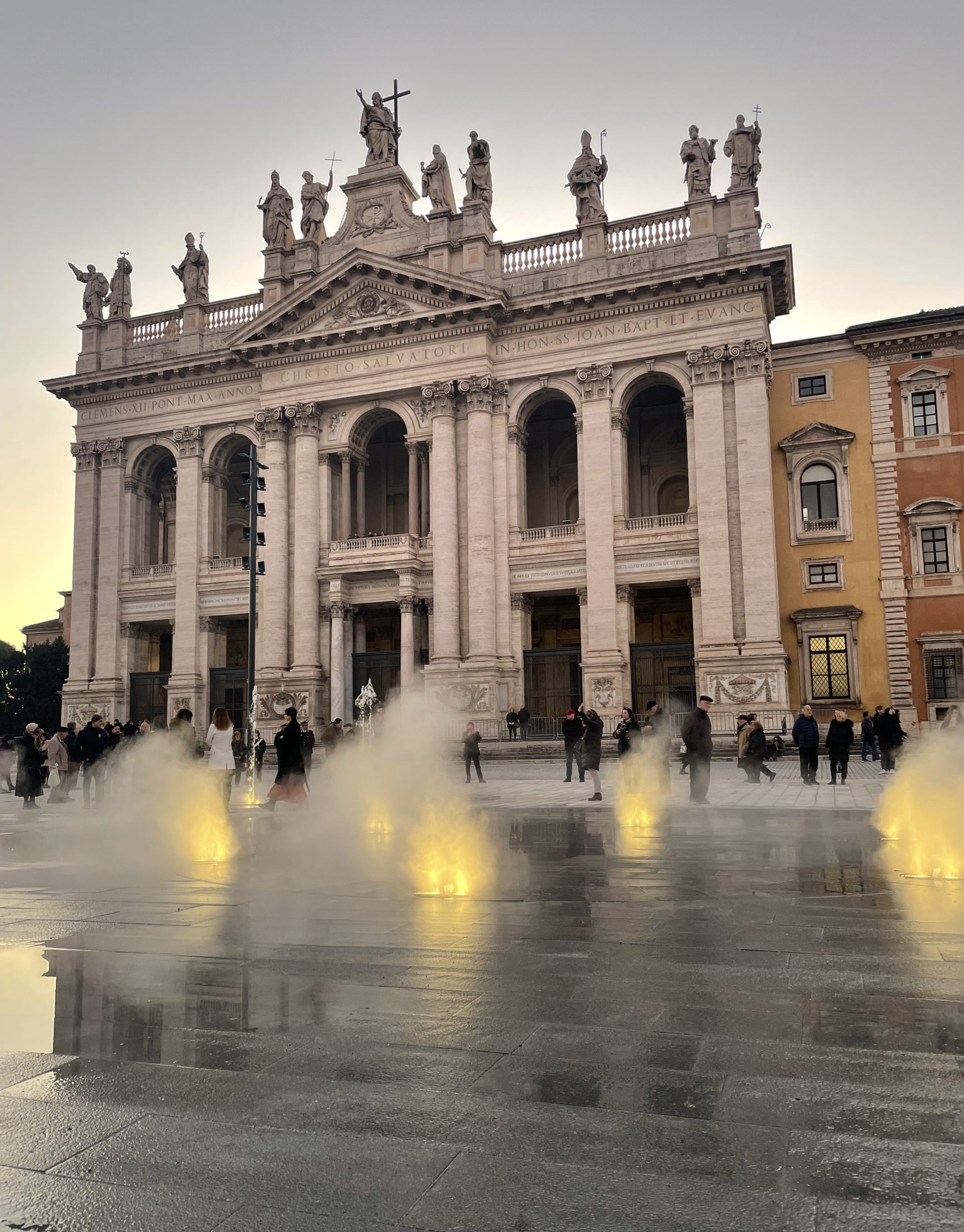 Installed in the monumental setting of Piazza San Giovanni in Laterano for the Jubilee, this dry deck fountain reinterprets the relationship between water and sacred space through a language of discretion and integration. Flush with the square’s pavement, the jets emerge directly from the ground, activating the surface with rhythm and vitality while preserving the openness and solemnity of the surrounding context.